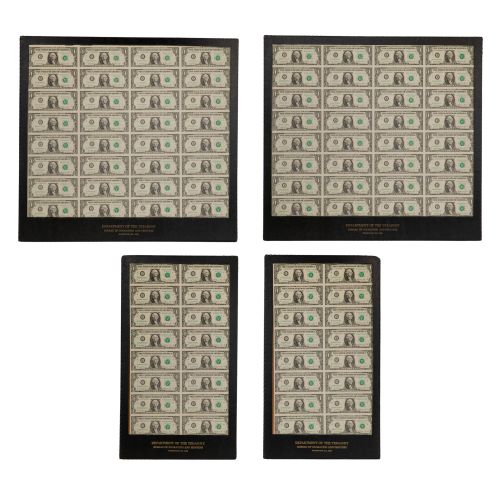 (4) items including (2) sheets of thirty-two 1981 $1 and (2) sheets of sixteen 1981 $1, in original United States Treasury cardboard matting and packaging