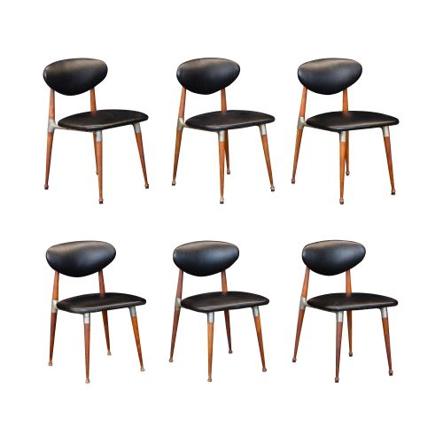 A set of (6) having cast metal hardware and vinyl upholstered seats, bottom metal hardware marked "Crucible 580"