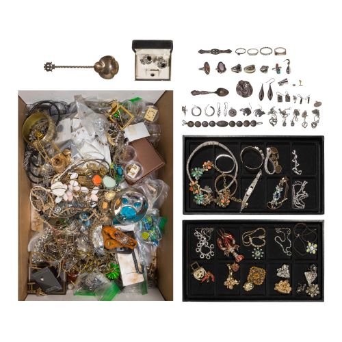 Approximately (15) pounds of jewelry including rings, bracelets, charms, earrings, pendants, spoons (some marked "925") and fashion jewelry including rhinestones, bracelets, necklaces, pendants and earrings