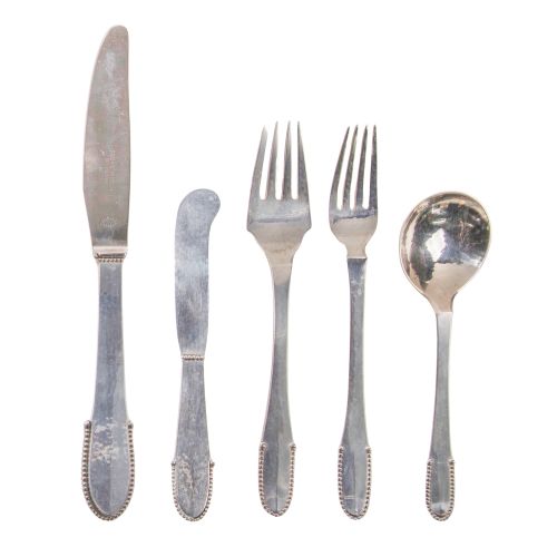 Lot #341: Georg Jensen Beaded Sterling and European (830) Silver Flatware Service