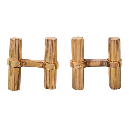 A pair of ribbed baton style cufflinks (erroneously marked "14k")