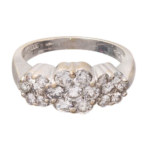 A halo style ring having nineteen round-cut diamonds weighing approximately 1.5 carats total (marked "14k")