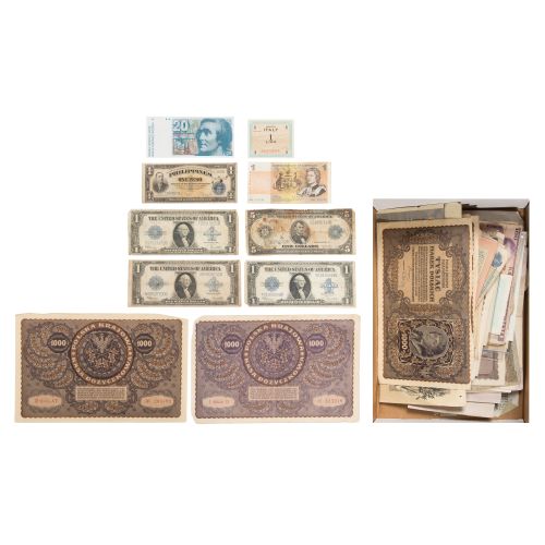 Including a 1914 $5 large, (3) 1923 $1 large notes and approximately (120) foreign bank notes from Germany, Poland, Japan, Russia and the Philippines