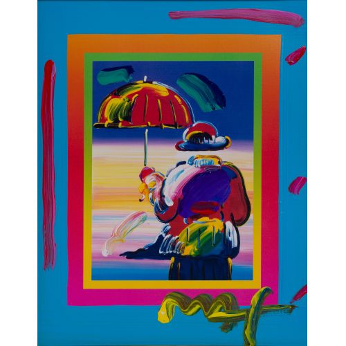 Lot #140: Peter Max (American, b.1937) "Umbrella Man on Blend" Mixed Media on Paper