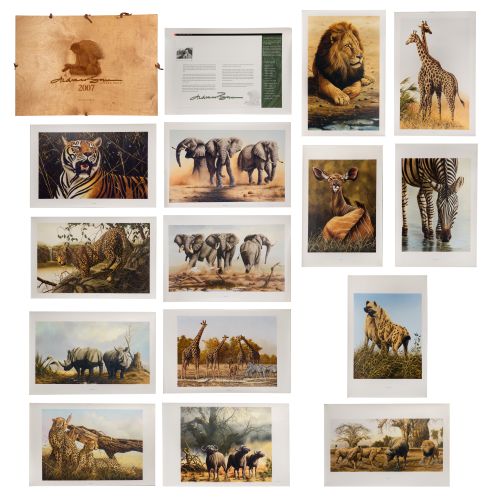 2007, including (13) giclee on canvas, hand signed and numbered, depicting animals and a title page, housed between wooden board covers