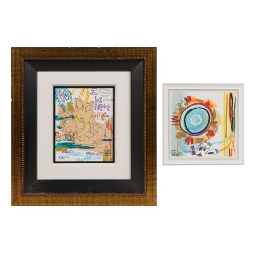 (2) undated items, signed "(LEBO)" including "The Magician" and "The Beat Tile C", both under acrylic in wood frames, having paperwork and COA