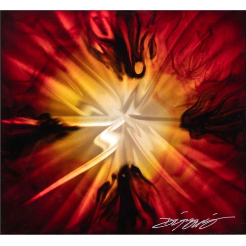 Lot #116: Chris Derubeis (American, b.1987) "Mini Red Burst" Mixed Media on Aluminum