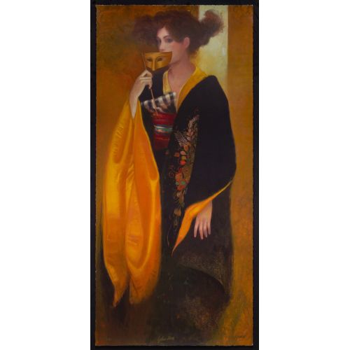 Lot #206: Felix Mas (American, b.1935) "Golden Mask" Serigraph