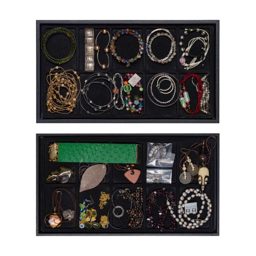 Including (2) fine necklaces (marked "14k"), a pair of earrings and a rope necklace (marked "925" / "sterling") as well as costume jewelry bracelets, necklaces, earrings and (4) wristwatches