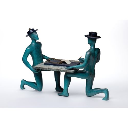 Undated, signed, #30/199, a cast bronze sculpture with polychrome patina, depicting the business world, including pamphlet