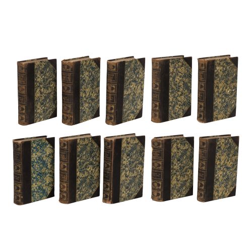 (10) volumes, titled "A Compilation of the Messages and Papers of the Presidents 1789-1897" by James D. Richardson, published by the authority of Congress, half brown leather bound covers, gilt blind stamped decor and marbled boards