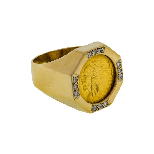 Lot #265: 1915 $2 1/2 Indian Head Gold Coin in 14k Yellow Gold and Diamond Setting