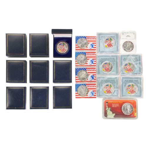Including (13) uncirculated 2000 colorized coins, most in presentation boxes, a 1999 PCI MS67 in acrylic case and a 1991, 1992, 1997, 1998, 1999 in acrylic cases