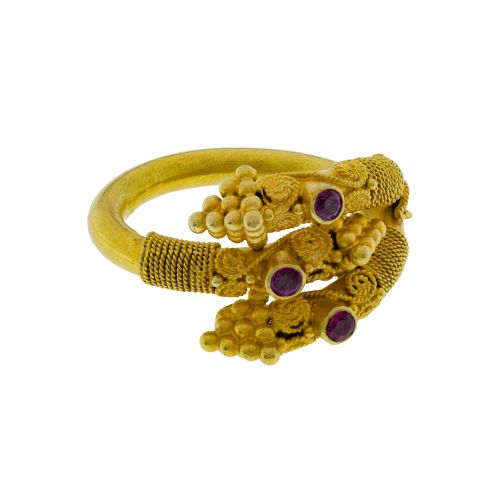 Byzantine style coil having bezel set rubies (unmarked 20k)