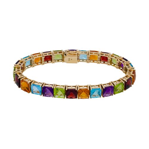 A multi-colored gemstone tennis style bracelet (marked "14k")