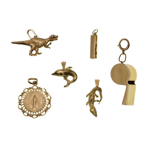 (6) items including (3) pendants and (3) charms (marked "14k" / "585")