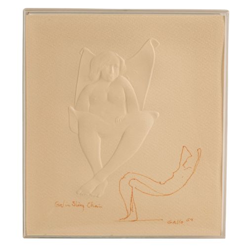 Lot #187: Frank Gallo (American, 1933-2019) "Girl in Sling Chair" Embossed and Cast Paper