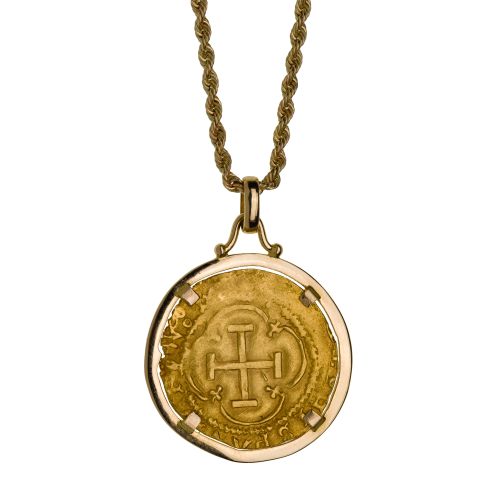 Lot #249: Spain: 1516-1556 1/8 Escudo Gold Doubloon in 18k Yellow Gold Bail Pendant