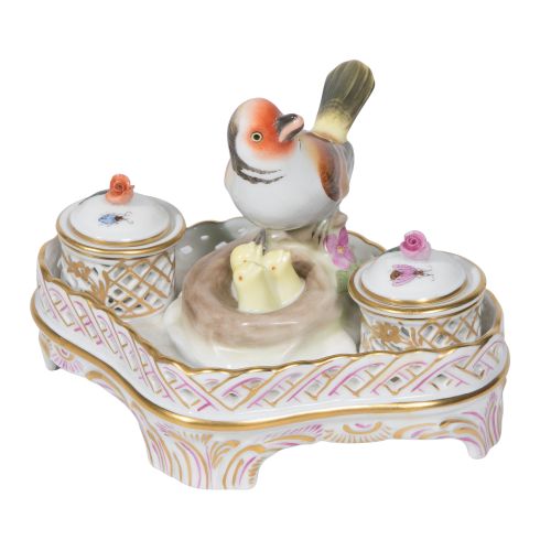 Lot #212: Herend Rothschild Bird Porcelain Inkwell