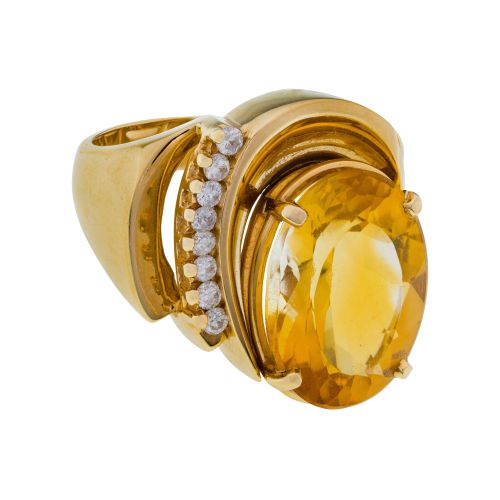 Lot #485: 14k Yellow Gold, Yellow Topaz and Diamond Ring