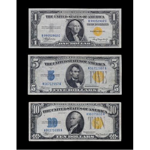 (3) items including a 1935-A $1 B99052902C, a 1934-A $5 K56712997A and a 1934-A $10 A96375699A