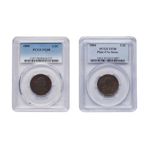 (2) items including 1804 VF-30 PCGS and an 1808 VG-08 PCGS, both in sealed acrylic cases having holograms