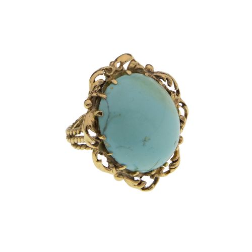 Lot #435: 14k Yellow Gold and Turquoise Ring