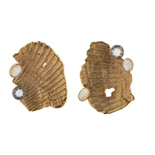 Lot #450: Eve Alfille 14k Yellow Gold, Moonstone and Aquamarine Clip-on Earrings
