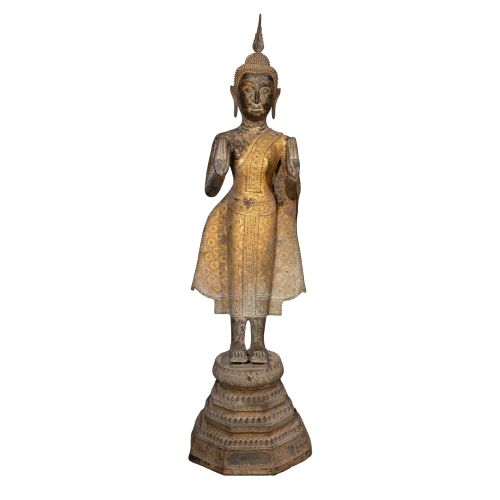 Lot #263: Thai Gilt Metal Standing Buddha Statue