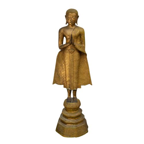 Lot #262: Thai Gilt Metal Standing Buddha Statue