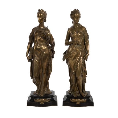 (2) items, allegorical figures emblematic of "Labor" and "Science", both on bronze-mounted marble bases having engraved title plaques