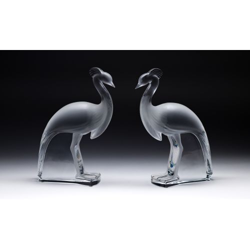 A pair in clear to frosted crystal, engraved Lalique mark