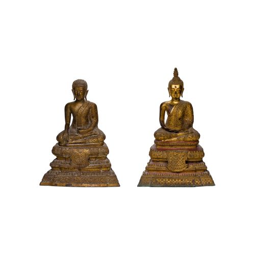 (2) Rattanakosin style seated Buddhas on bases having overall raised floral decorations