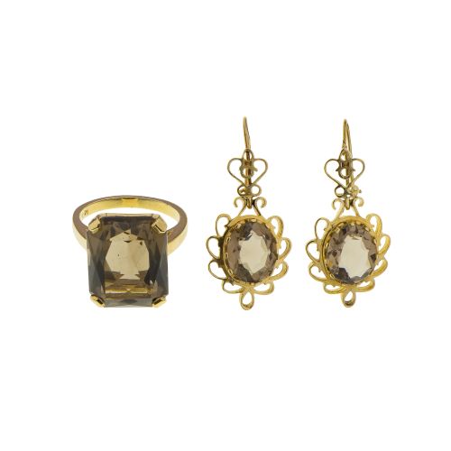 Lot #468: 14k Yellow Gold and Smokey Topaz Jewelry Suite