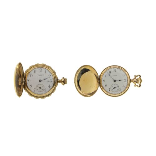 (2) total items including an Elgin hunter case #15325538 dating to 1911, 15-jewel movement, size 0S, 354, white dial having Arabic numerals, blue hands, seconds sub-dial, pendant wind, pendant set (marked "14"); together with a Standard gold-filled hunter case movement #199370 dating to 1888, size 0S, white dial having Arabic numerals, blue hands, seconds sub-dial, pendant wind, pin set