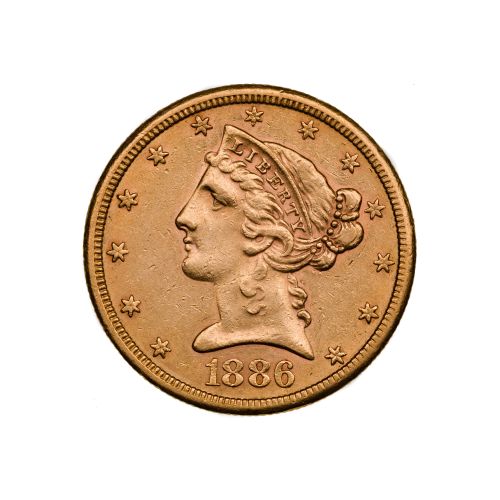 Lot #572: 1886 $5 Liberty Head Gold