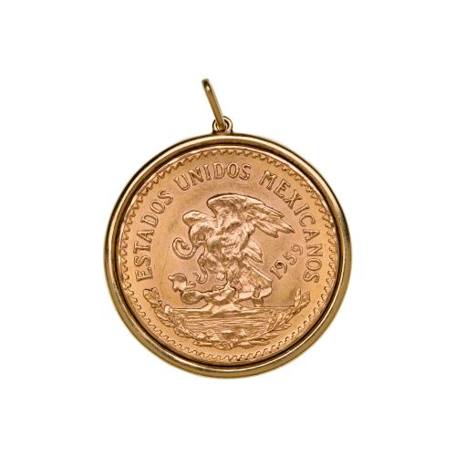 Lot #393: Mexico: 1959 20-Pesos Gold in 18k Yellow Gold Bail