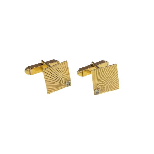 Lot #408: 14k Yellow Gold and Diamond Cufflink Set