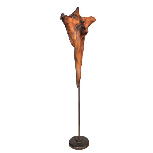 Undated, unsigned burnished abstract animal form, mounted on metal stand
