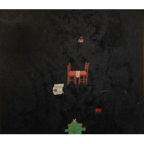 Undated, unsigned, depicting chairs and random items, in a gold-tone wood frame