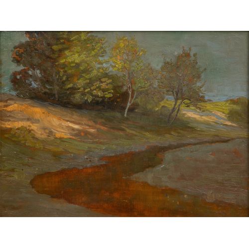1912, signed lower right, depicting a landscape, in a gold-tone gadrooned wood frame