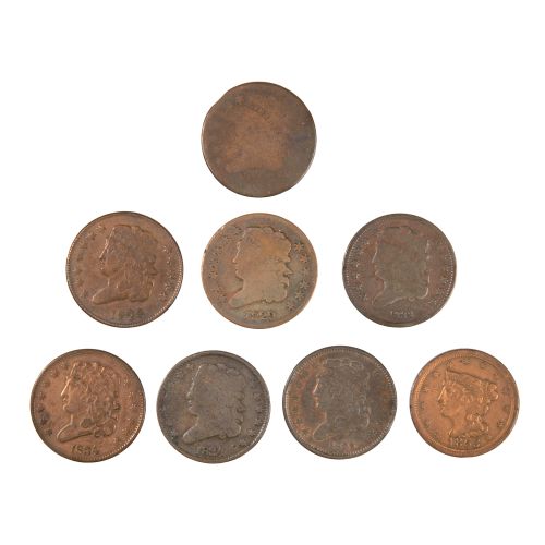(8) coins including an 1810, 1828, 1829, 1832, (2) 1834, 1835 and 1853