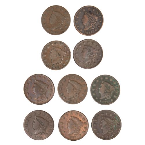 (10) coins including 1820, 1821, 1822, 1823, 1824, 1825, 1826, 1827, 1828 and 1829
