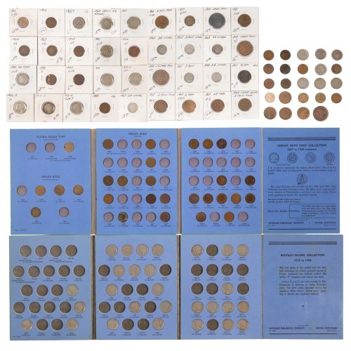 Including (3) Shield 5c, (5) Liberty 5c, (36) Buffalo 5c (most contained in a Whitman folder), (6) 3c Nickels, (10) 2c pieces, (4) Large 1c, (4) Flying Eagle 1c, (35) Indian 1c (most contained in a Whitman folder) and a Classic Head half 1c