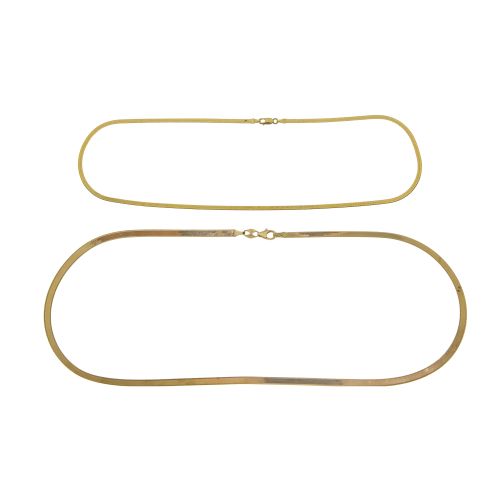 (2) herringbone style chains (all marked "14k")
