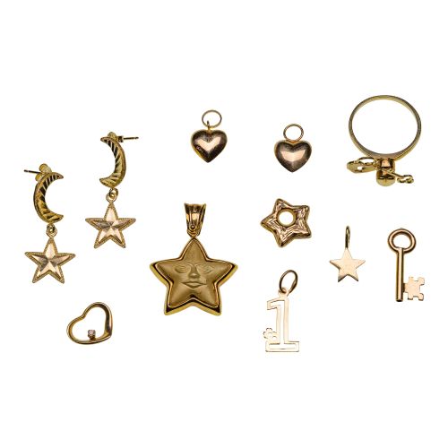 (10) items including (8) pendants, a pair of pierced earrings and a ring (all marked "14k")