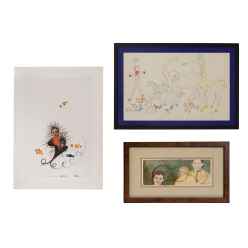 (3) works, c.2020, all signed, depicting children and animals, most framed
